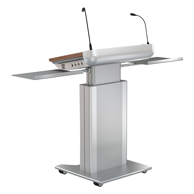 ILS Synergy WW delivers ILS quality with a smart design. The solid top of the lectern is made of handmade thick wood and placed on a motorized wide pillar with a height adjustment range up to 40 cm (15 ”+). Two buttons will help you to control it. In the lowest position, a seated person can freely use the system.